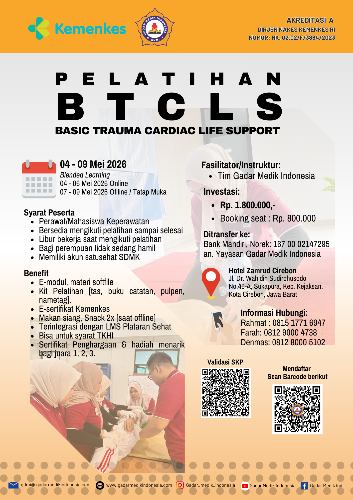 Pelatihan Peningkatan Kompetensi Kegawatdaruratan bagi Perawat. Pelatihan dilaksanakan dengan metode Blended Learning [3 hari Online, 3 hari Offline]