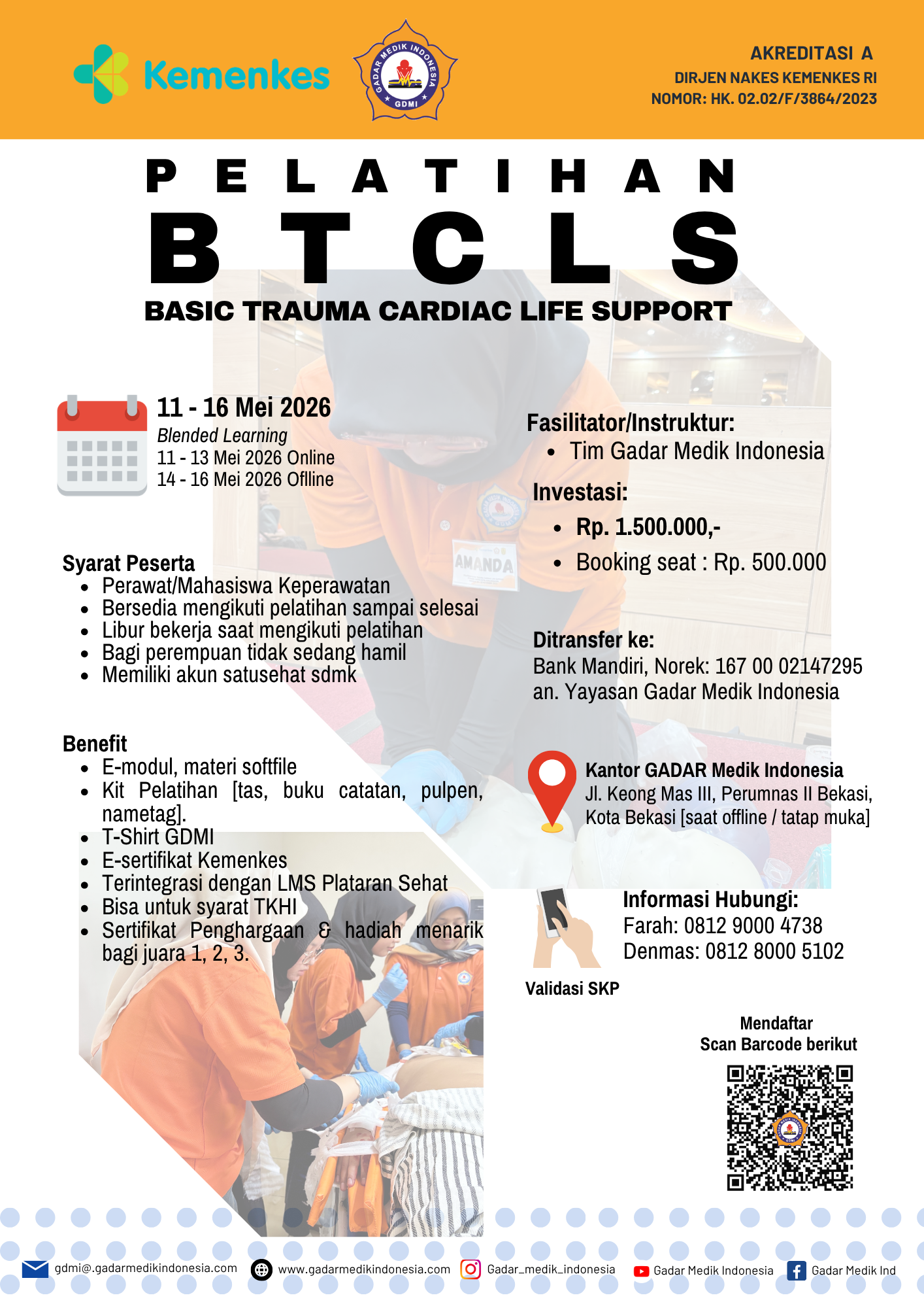 Pelatihan Peningkatan Kompetensi Kegawatdaruratan bagi Perawat. Pelatihan dilaksanakan dengan metode Blended Learning [3 hari Online, 3 hari Offline]