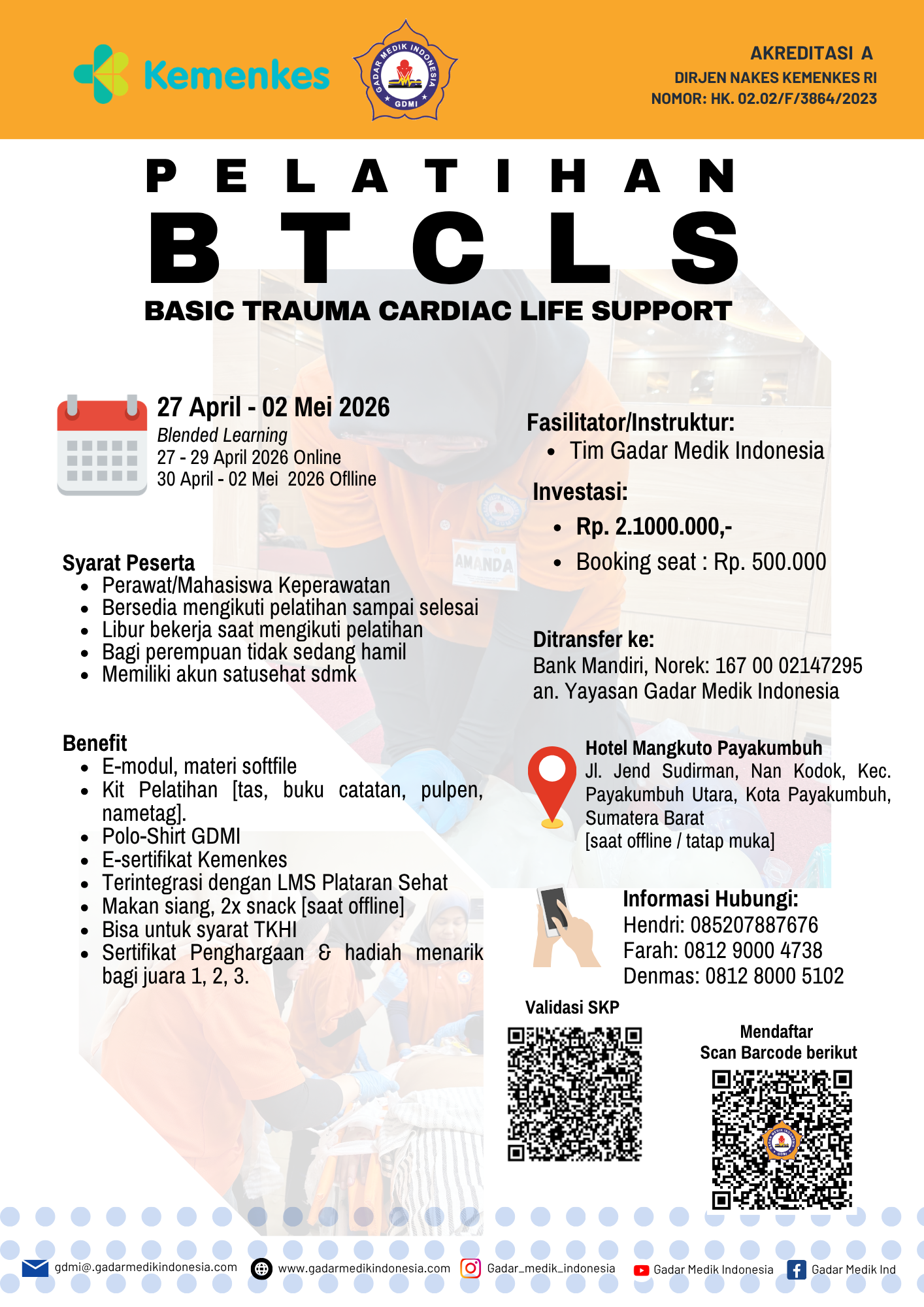 Pelatihan Peningkatan Kompetensi Kegawatdaruratan bagi Perawat. Pelatihan dilaksanakan dengan metode Blended Learning [3 hari Online, 3 hari Offline]