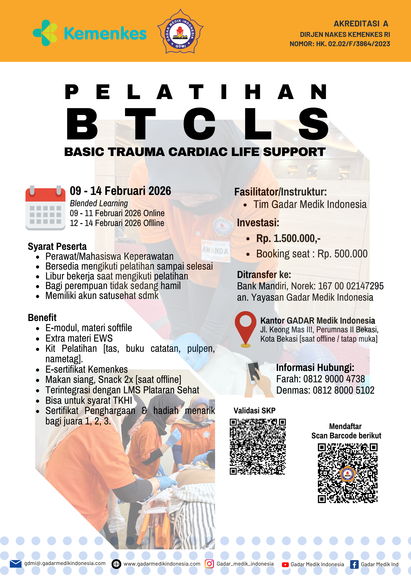 - Kit pelatihan (Tas, buku catatan, pulpen, nametag)