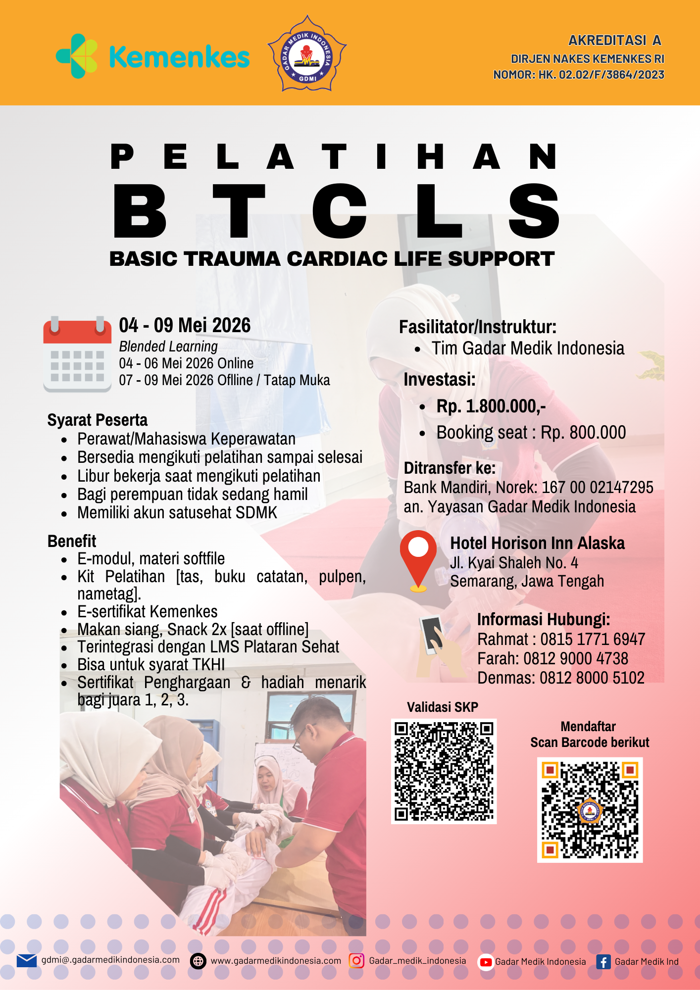 Pelatihan Peningkatan Kompetensi Kegawatdaruratan bagi Perawat. Pelatihan dilaksanakan dengan metode Blended Learning [3 hari Online, 3 hari Offline]