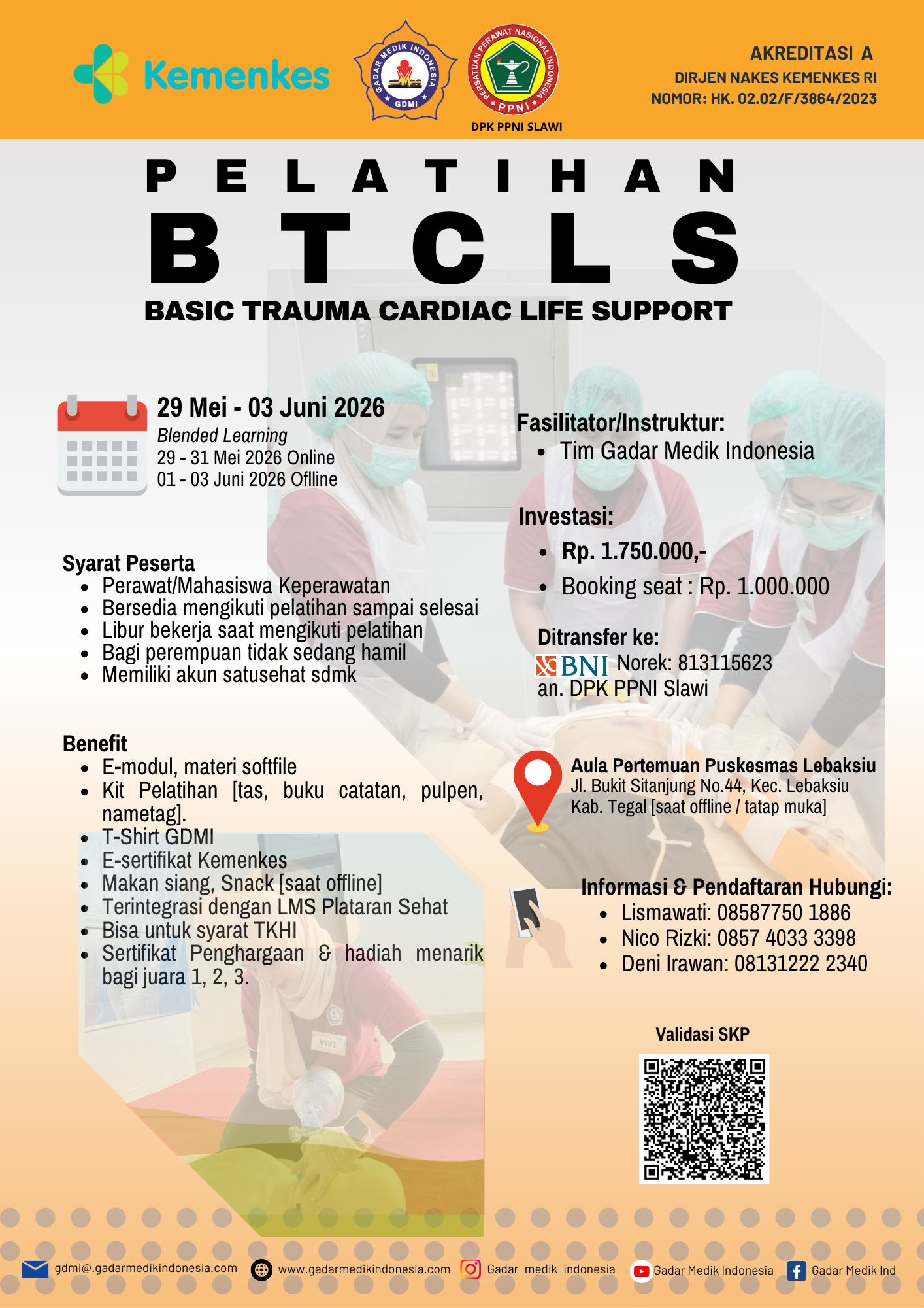 Pelatihan Peningkatan Kompetensi Kegawatdaruratan bagi Perawat. Pelatihan dilaksanakan dengan metode Blended Learning [3 hari Online, 3 hari Offline]