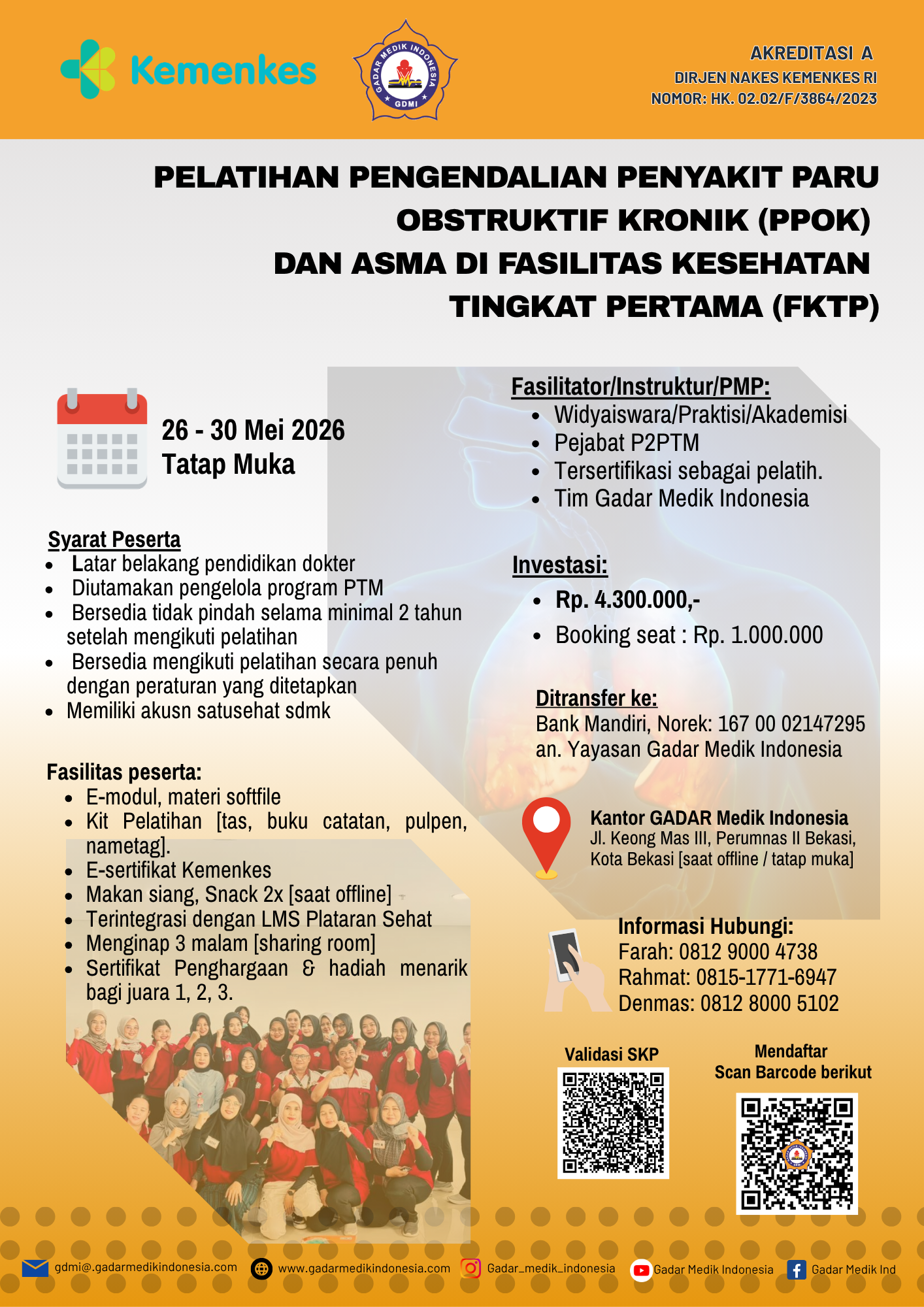 PELATIHAN PENGENDALIAN PENYAKIT PARU OBSTRUKTIF KRONIK (PPOK) DAN ASMA DI FASILITAS KESEHATAN TINGKAT PERTAMA (FKTP)